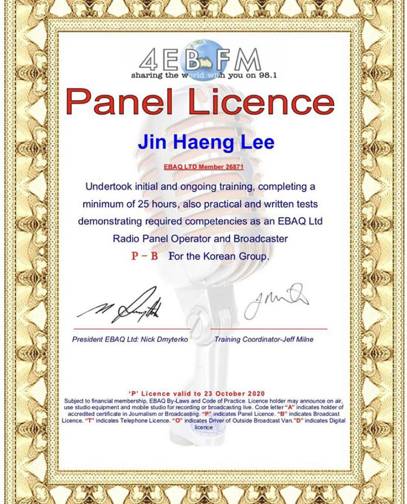 - 호주 브리즈번 4EB FM 한국어방송 자원활동