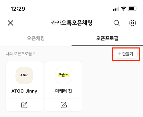 혹은, 오픈채팅방에서 바로 오픈프로필을 만들 수도 있습니다.