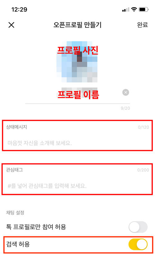 이 경우 오픈 프로필을 사용할 수 없으니 유의해주세요.