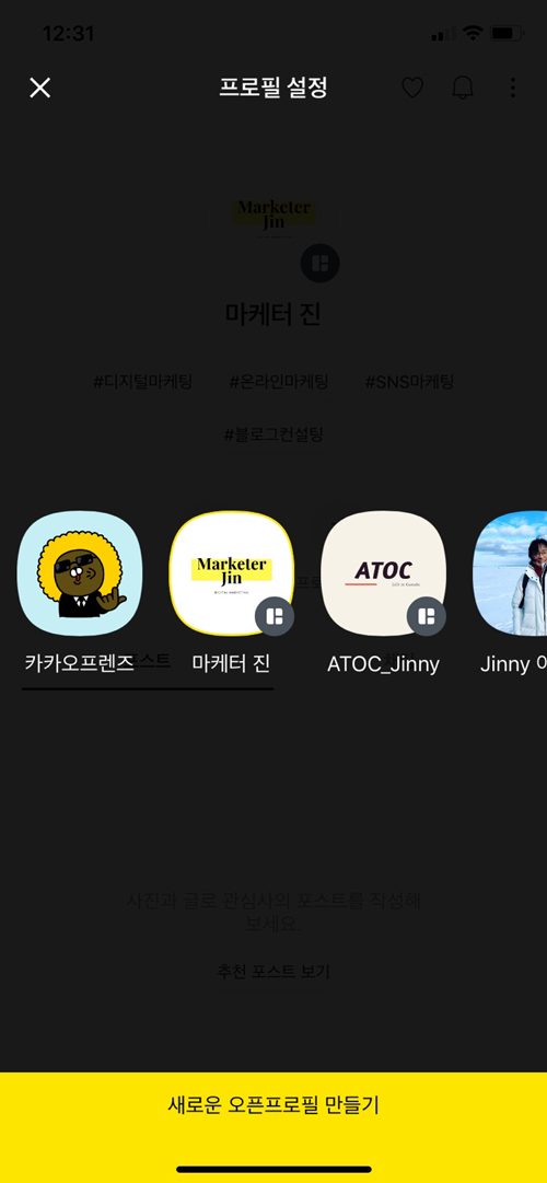 오른쪽의 '오픈 프로필'을 탭해주세요.