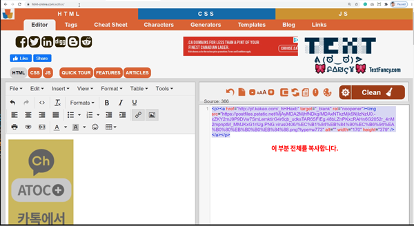 혹시, 티스토리를 사용하시는 분들은 티스토리 블로그에서 하셔도 됩니다. 티스토리는 html 편집을 지원하거든요. 아니면 혹시 드림윅스나 나모 웹에디터 등의 위지위그 소프트웨어를 사용할 수 있으시다면 활용하셔도 되고요.