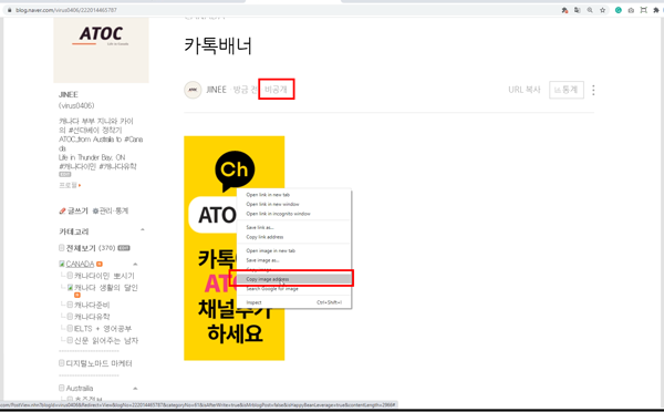원래 네이버 블로그에 글을 쓰고 이미지를 삽입하면 네이버 서버로 들어가게 되거든요. 그래서 모든 이미지에는 이렇게 고유의 주소가 있습니다. 이후에도 혹시 필요하시면 활용하시면 좋겠죠?