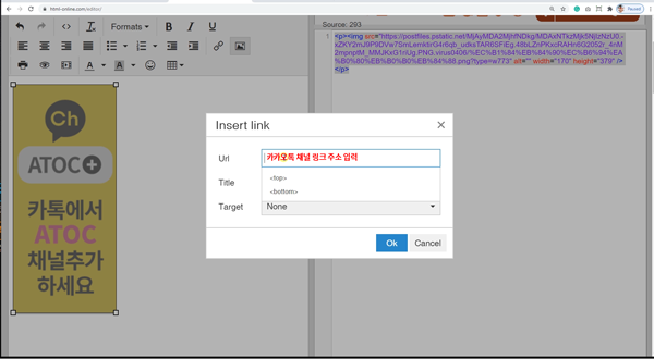 이 다음에는, 이 이미지를 클릭했을 때 우리의 카톡채널이 나오도록 링크를 걸어야 합니다.