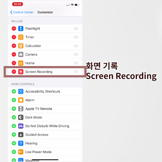 아이폰 제어센터에 화면녹화 버튼 생성하기
