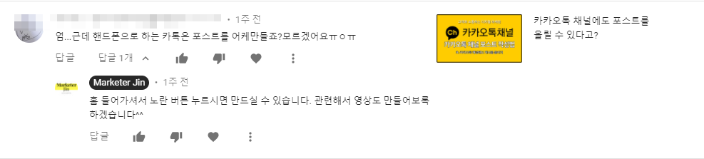댓글로 카카오톡 채널에 모바일로 포스트하는 방법을 질문하신 분이 계셨어요.