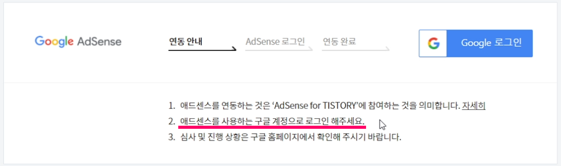 구글 애드센스를 연결해보았는데요, 애드센스를 관리하는 구글 아이디로 로그인만 되면 자동 연동이 되게 되어 있습니다.