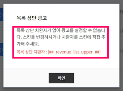 목록 상단 광고를 설정하는 순간, 이런 메세지가 뜨더라고요.