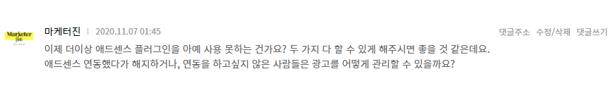 다만, 구글 애드센스 자체 기능을 보다 잘 활용할 수 있도록 플러그인도 남겨달라는 거죠.