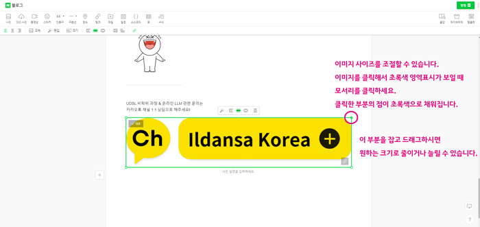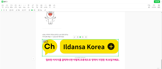 블로그나 카페에 이미지를 삽입하신 이후에 이미지를 클릭하세요.
