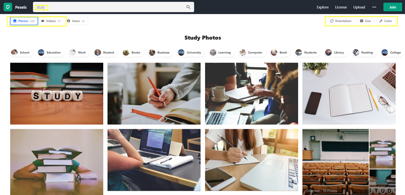 추천한 세 개의 사이트에서 'STUDY'라는 검색어로 검색을 해보았다.