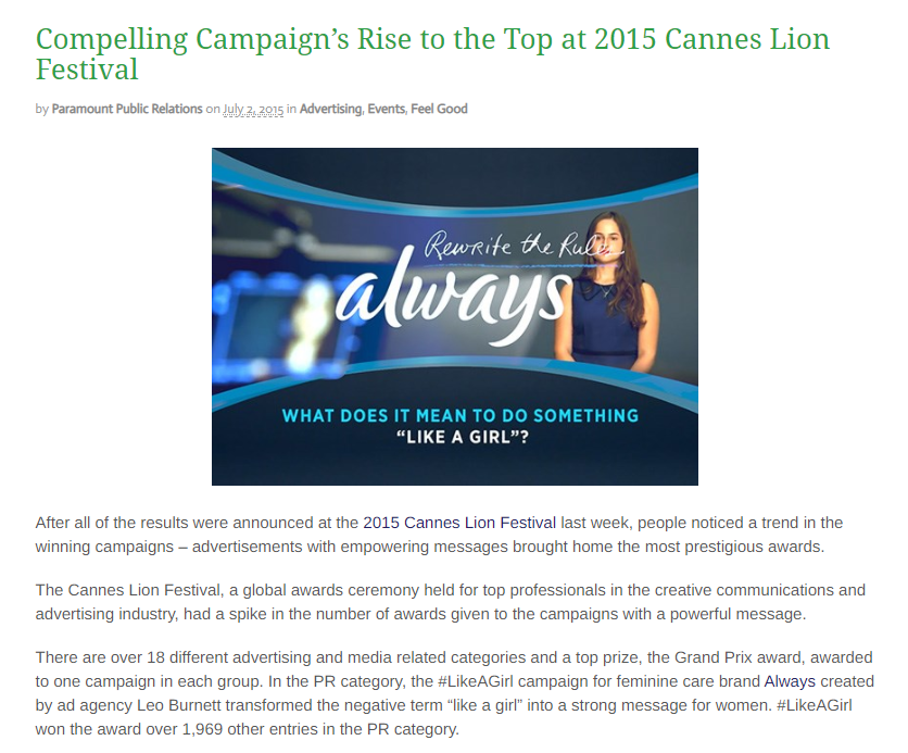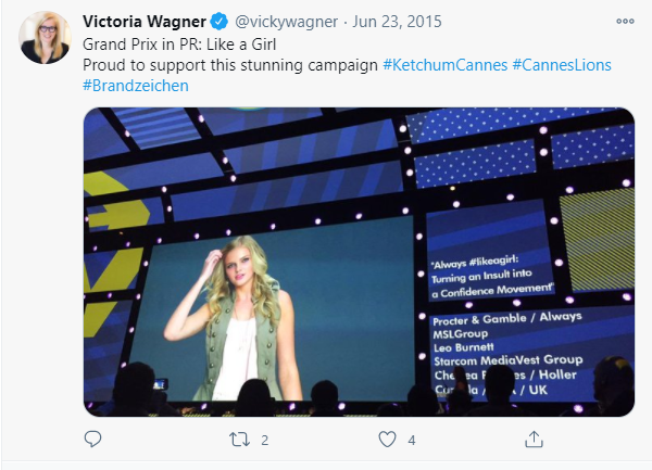 P&G Always의 #LikeAGirl 캠페인 수상 내역