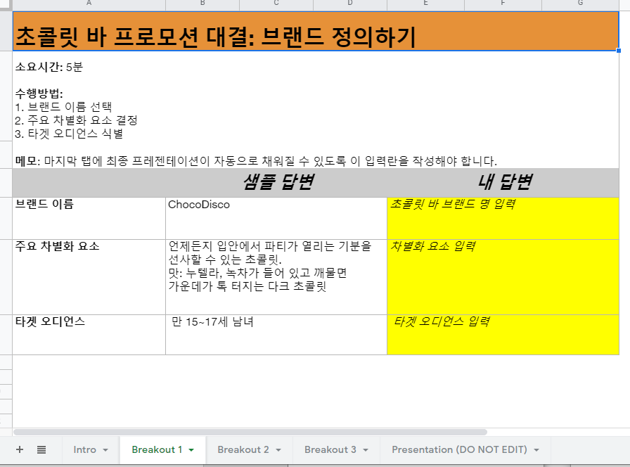 필요에 따라서는 함께 작업할 수 있는 워크시트를 줘도 좋겠죠.