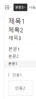 네이버에는 본문/ 소제목 / 인용구 중 하나를 선택하는 기능이 있습니다.