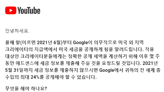 [중요] YouTube 수입 관련 세금에 대한 변경사항