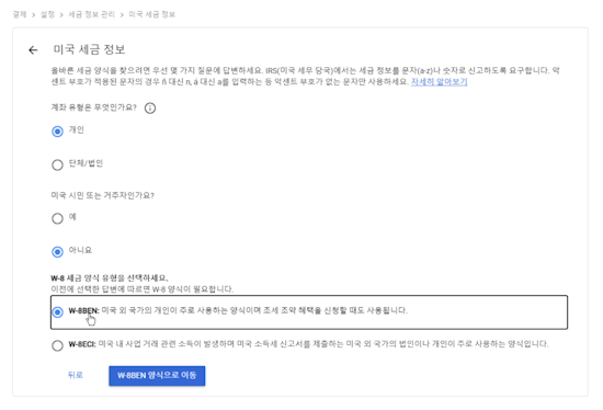 W-8BEN 양식을 구글 애드센스에 입력하는 과정 함께 해보아요!