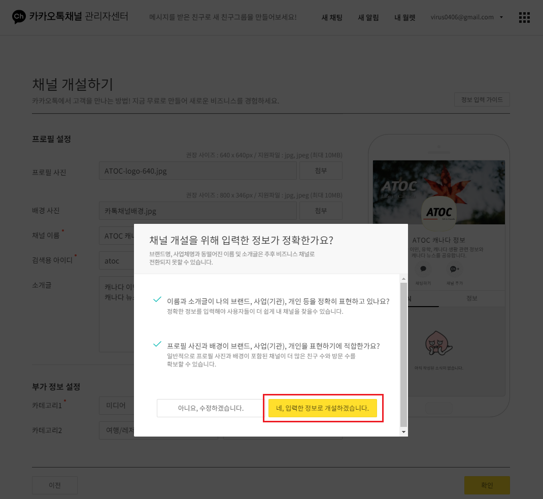 이렇게 카카오톡 채널이 뚝딱 개설되었다!