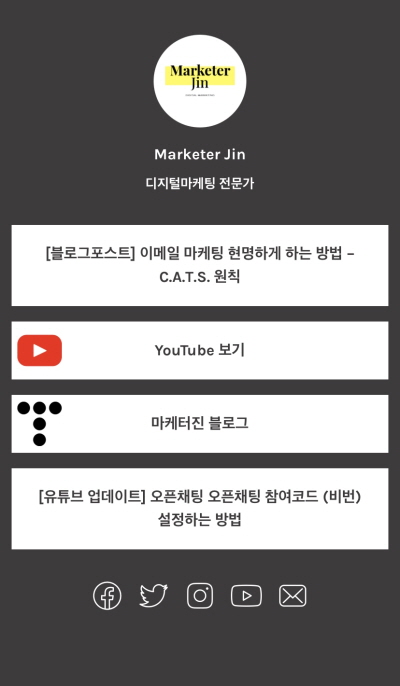 페이스북, 트위터, 인스타그램, 유튜브, 이메일 등 다양한 항목이 있습니다.