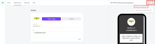 인스타그램에 링크트리 주소 넣기 (Share)
