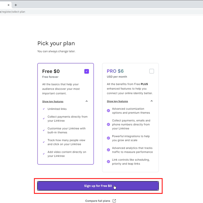 크게 중요하지 않은 것이므로 큰 고민 없이 선택하셔도 됩니다. - 무료 버전 선택: 링크 무제한, 디자인 개인화, 지불 받기, 클릭 추적, 비디오 콘텐츠 등 가능. 멀티링크 서비스만 이용한다면 무료로도 충분합니다.