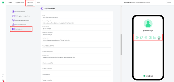 3. 링크트리 개인 설정