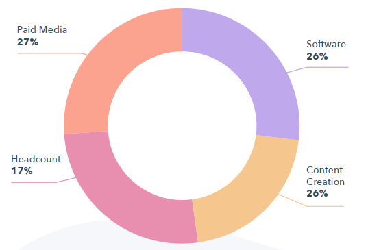 마케팅 예산의 사용처는 네 가지 정도의 항목에서 다소 고르게 나타났습니다.