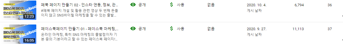 한편, 제가 마케팅 관련해서 중요하다고 생각하는 내용들을 굉장히 의욕적으로 준비해서 영상을 만들었는데 조회수가 굉장히 처참했던 경우도 있었습니다. 예를들면 페이스북 페이지 관련한 영상이 그랬어요. 시간이 지나면서 조회수가 점점 늘어나긴 했는데, 처음 한 달 정도는 정말 조회수가 안나와서 의기소침해졌던 기억이 있습니다.