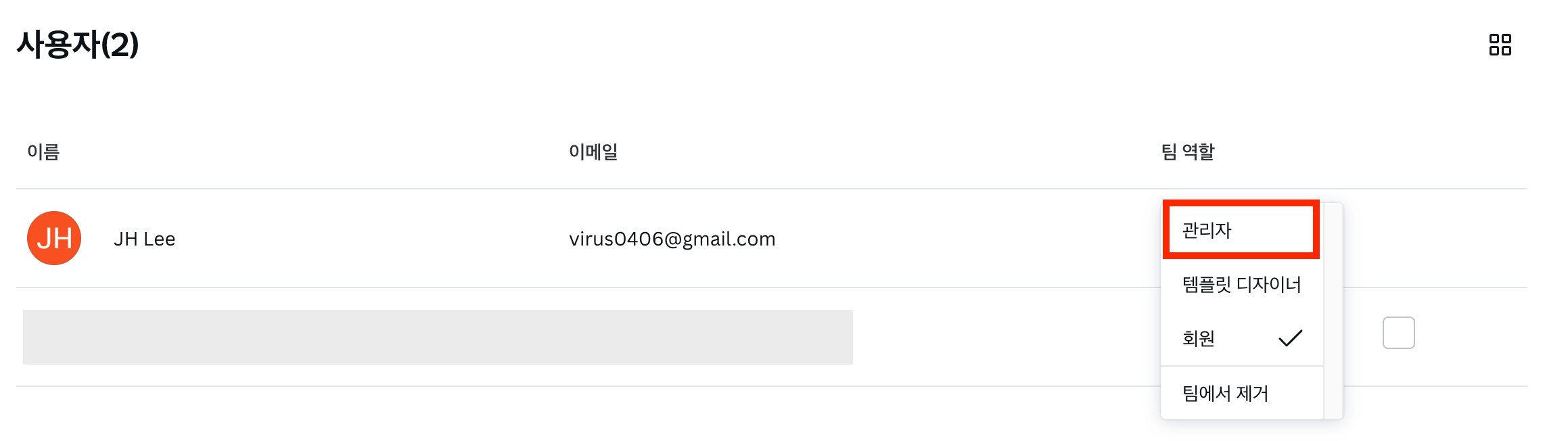 - 권한 변경이 필요한 사용자의 ‘팀 역할' 수정