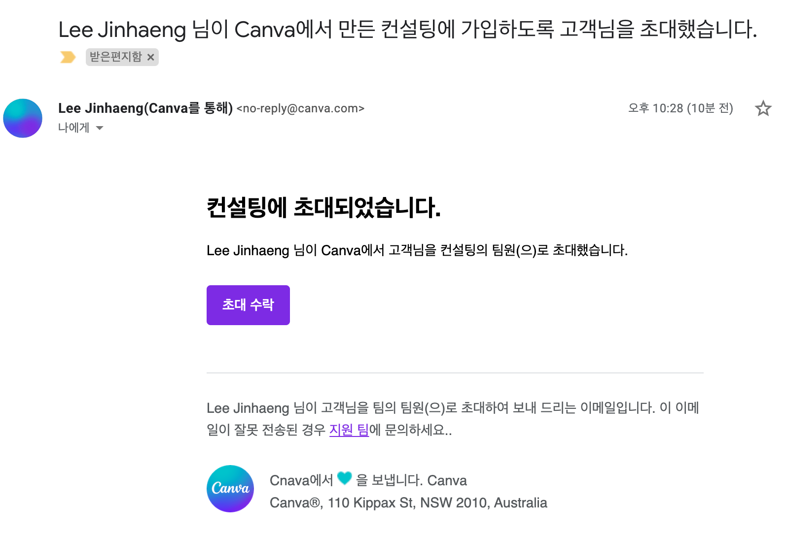 - 초대받은 사람이 canva에 초대받은 이메일로 로그인