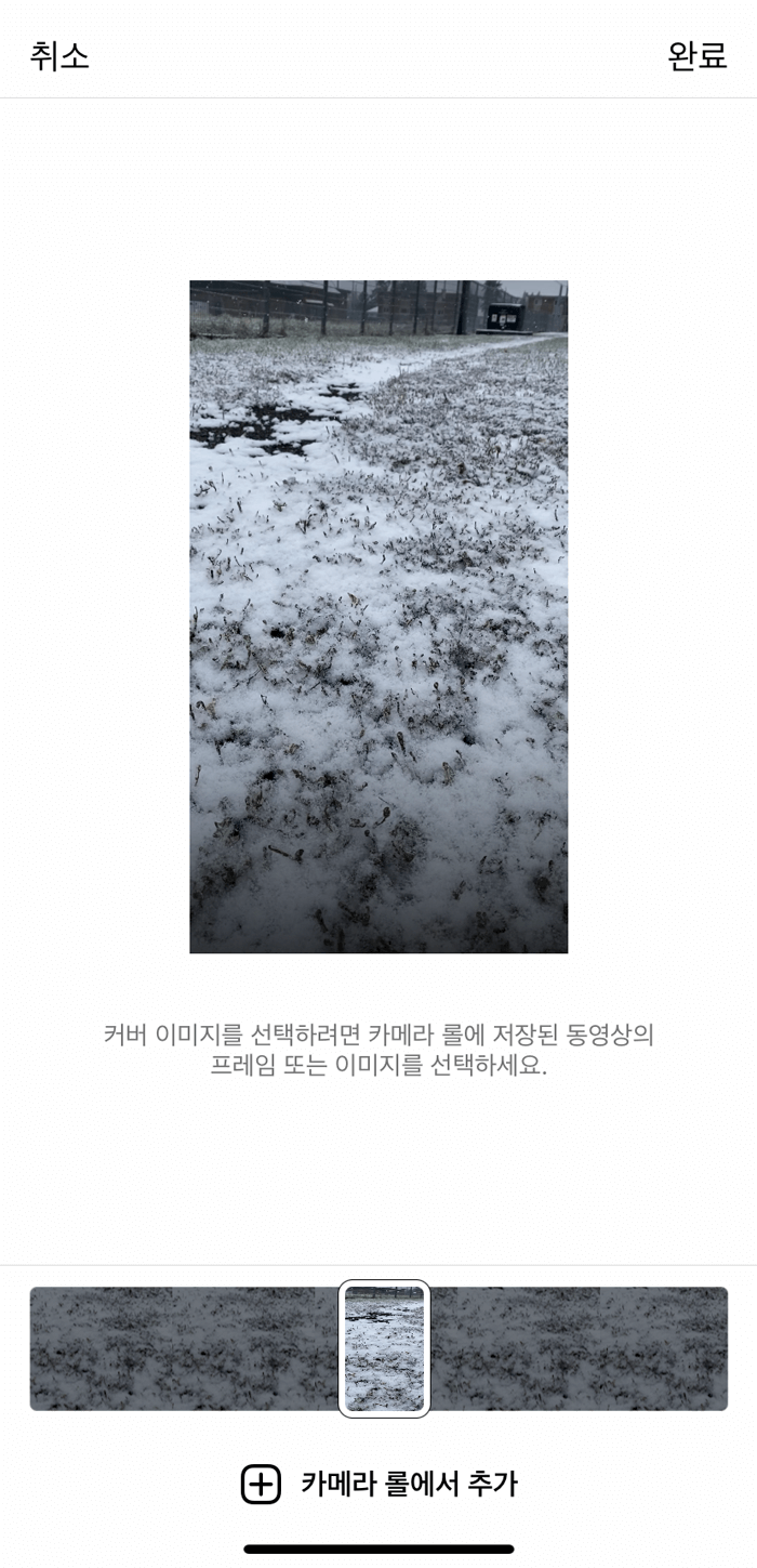 ‘커버사진’을 클릭하면 릴스 영상의 프레임 중 하나를 선택할 수 있습니다.