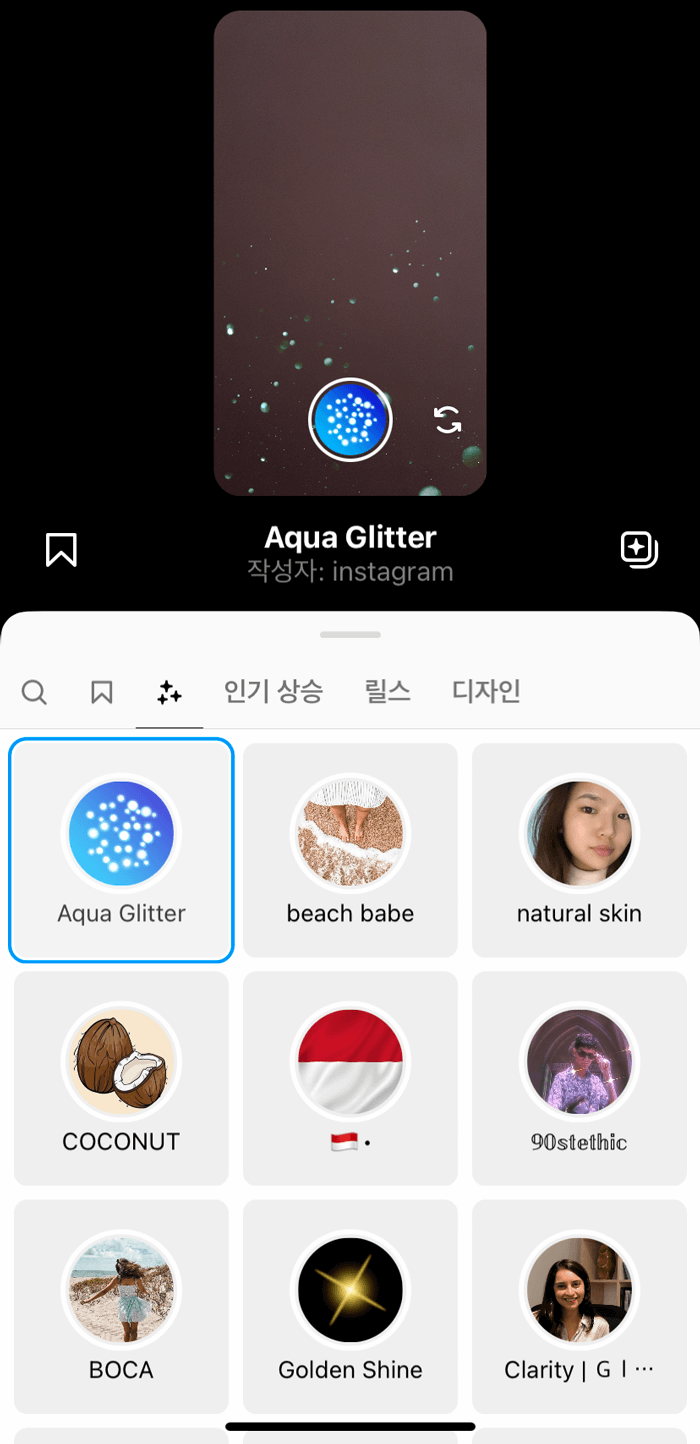 - 하단에서 효과 아이콘을 눌러서 카메라 효과를 찾습니다.