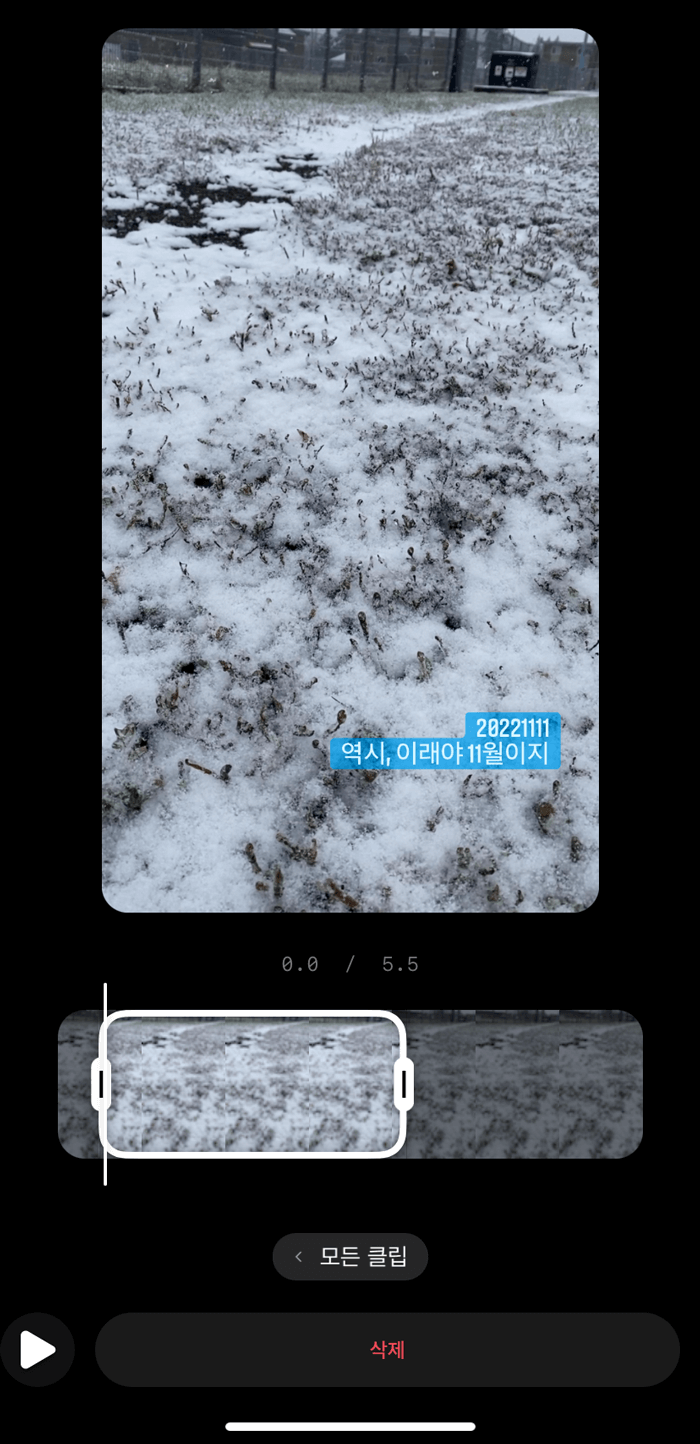 - 이미 선택한 영상의 길이를 자를 수 있습니다.