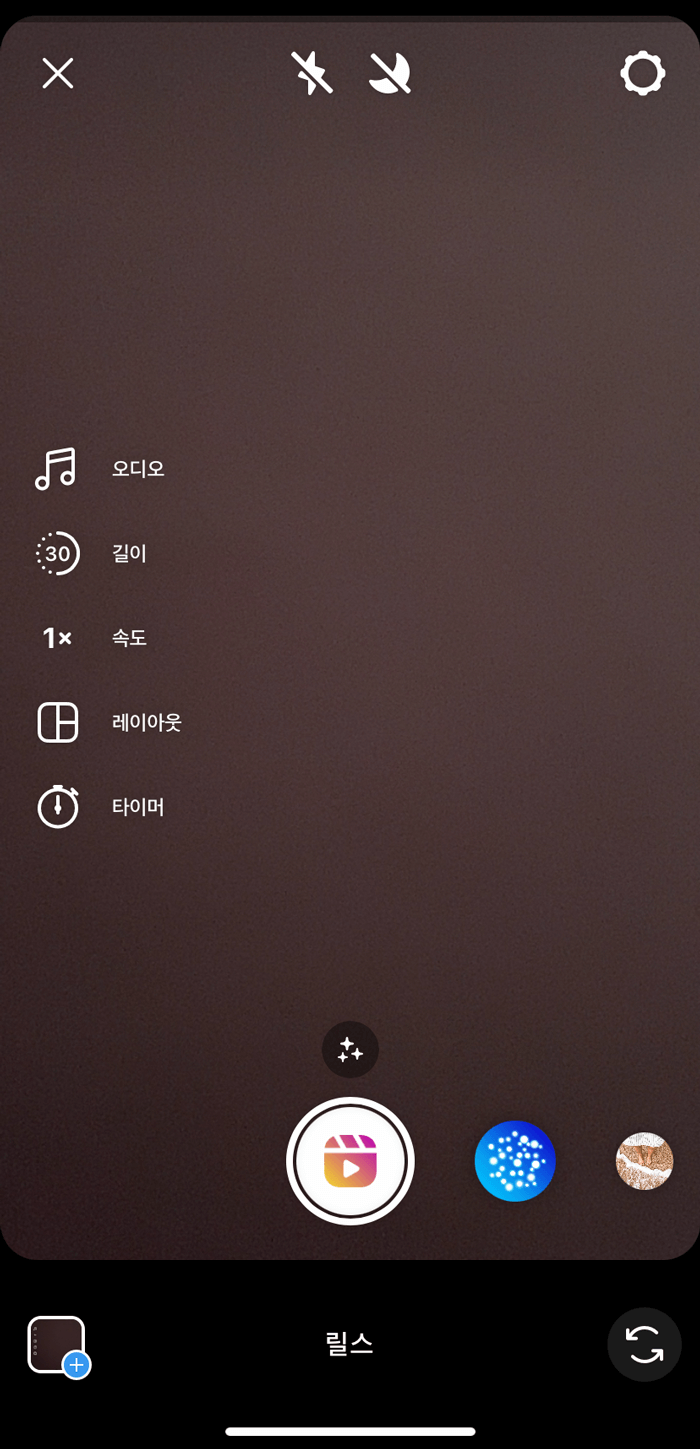 - reels 카메라에서 직접 촬영: 인스타그램 앱에서 릴스 선택 후 바로 촬영이 가능합니다. 15초, 30초, 60초 중 선택할 수 있습니다. 촬영한 영상을 편집할 수도 있습니다.