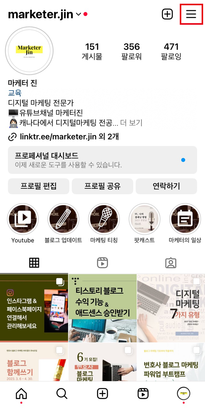 1. 인스타 앱 프로필에 들어가세요.